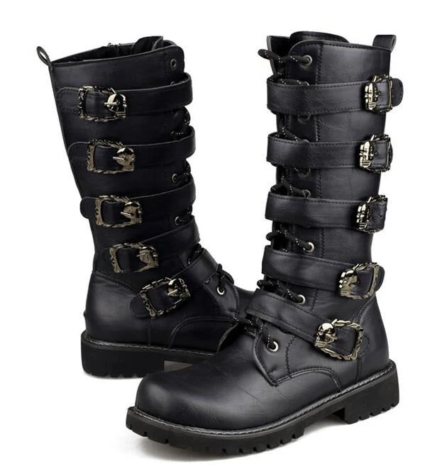 Common styles include leather platform boots, combat boots with buckles and knee-high lace-up boots.